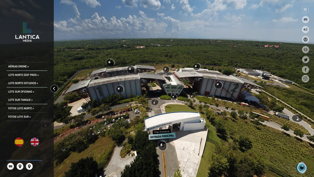 Fantástico Tour Virtual por las instalaciones de Lantica Media (República Dominicana) donde podremos hacer un completo recorrido por el Lote Norte (Área de los Estudios de grabación y del edificio de Producción) y por el Lote Sur (recorrido por el Único Tanque de Agua Cinematográfico del Caribe).